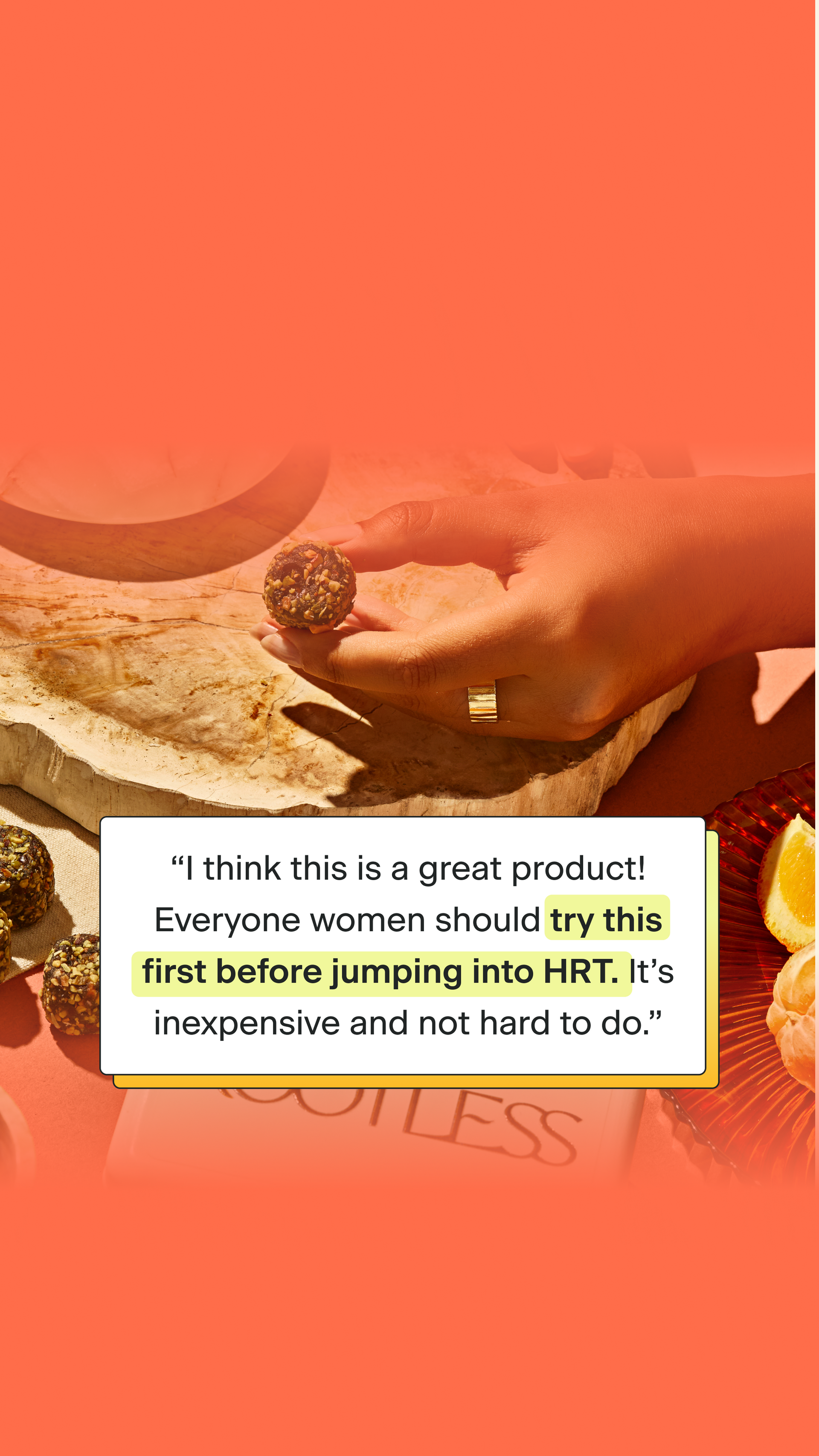 Simply put: regularly eating the Daily Bites can help you feel a host of benefits, from beating fatigue, bloating and hormonal acne to alleviating mood swings and hot flashes. We feel so convinced that we’re offering you your money back if you don’t feel the benefits in 30 days. Write to hello@getrootless.com with the subject line: REFUND and we’ll give you your money back. No questions asked.