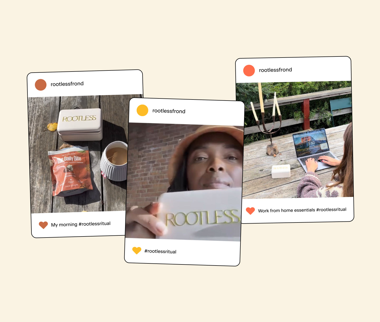 2. Each time you post on Instagram, Tiktok, or Facebook using #RootlessRitual, you’re automatically entered in our monthly raffle to win free Daily Bites for you and a friend!