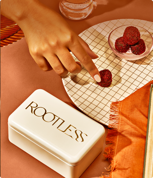 Rootless provides a convenient and delicious way to incorporate more fiber, omega-3 fatty acids, and a variety of minerals into your diet. These ingredients can improve energy, metabolism, and skin health – areas that are often affected during menopause. Rootless bites provide an ideal and wholesome indulgence for nurturing oneself!