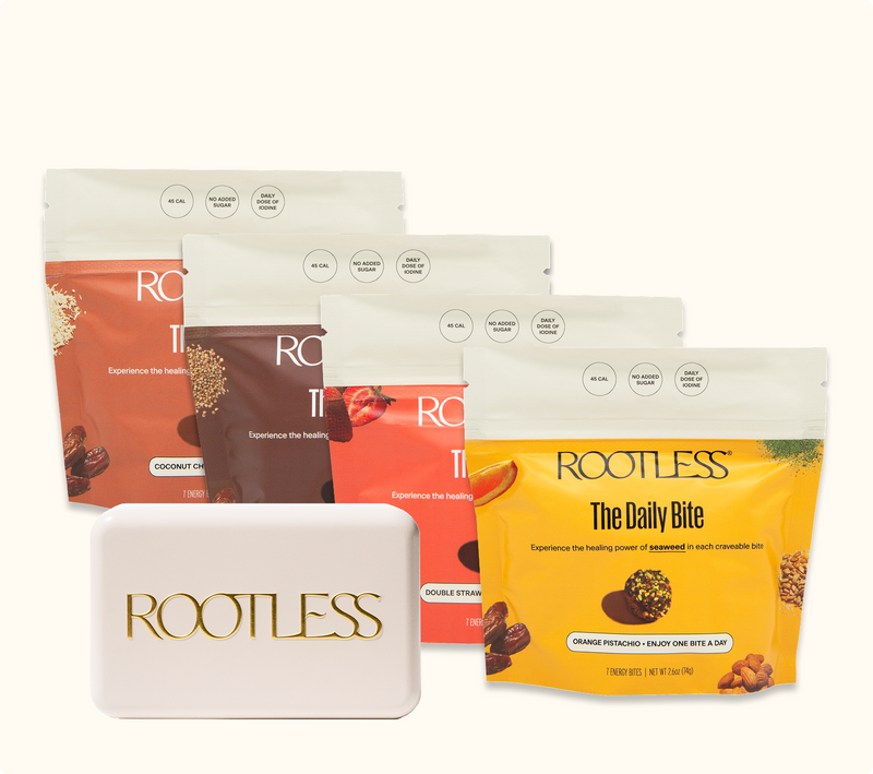 Powered by sea moss and four of its seaweed sisters, every craveable, seaweed-powered Daily Bite delivers your daily dose of iodine to keep your thyroid (aka hormone HQ) humming.